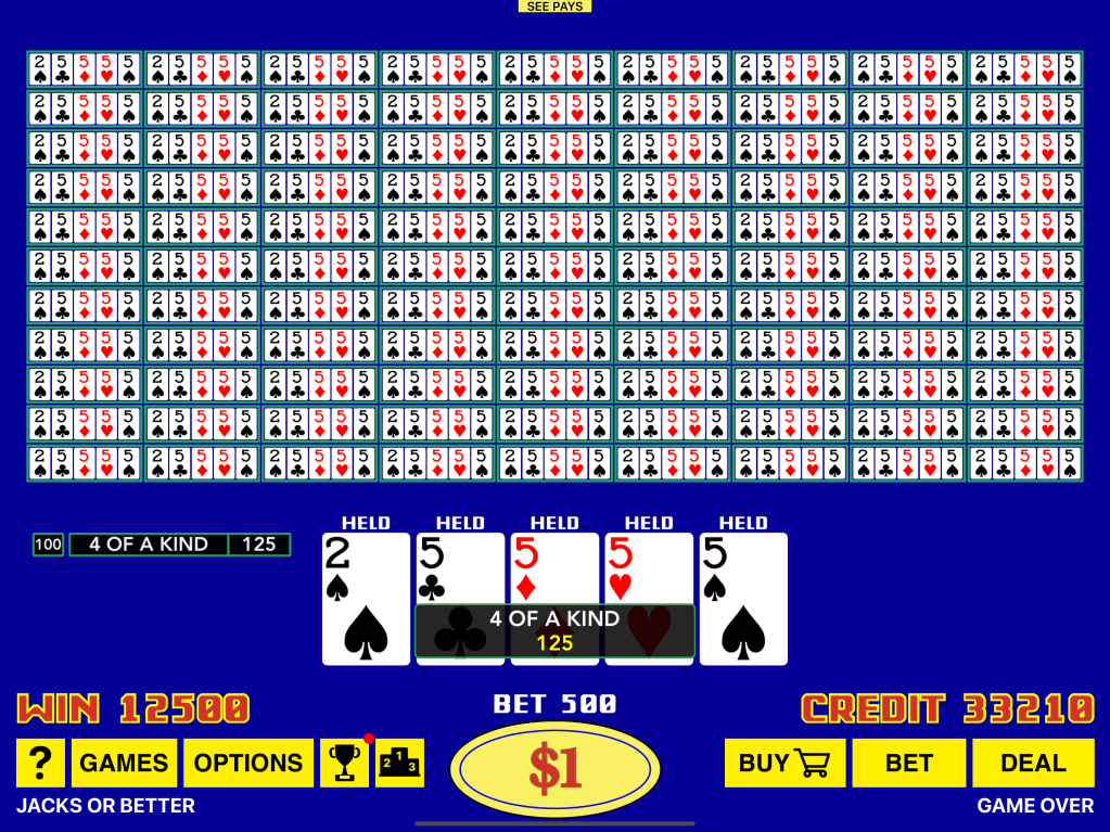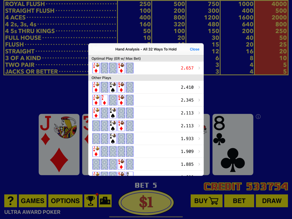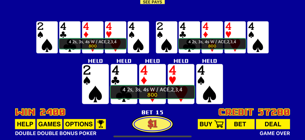 Our app boasts a collection of full-pay games, promising a return rate of over 99%, with some games offering returns that exceed 100%. This isn’t just your standard Video Poker selection; we’ve also crafted unique and thrilling games, marked with an asterisk (*), that you won’t encounter in any casino. These exclusive titles are designed to inject fresh excitement into your gaming sessions, ensuring there’s always something new to explore.