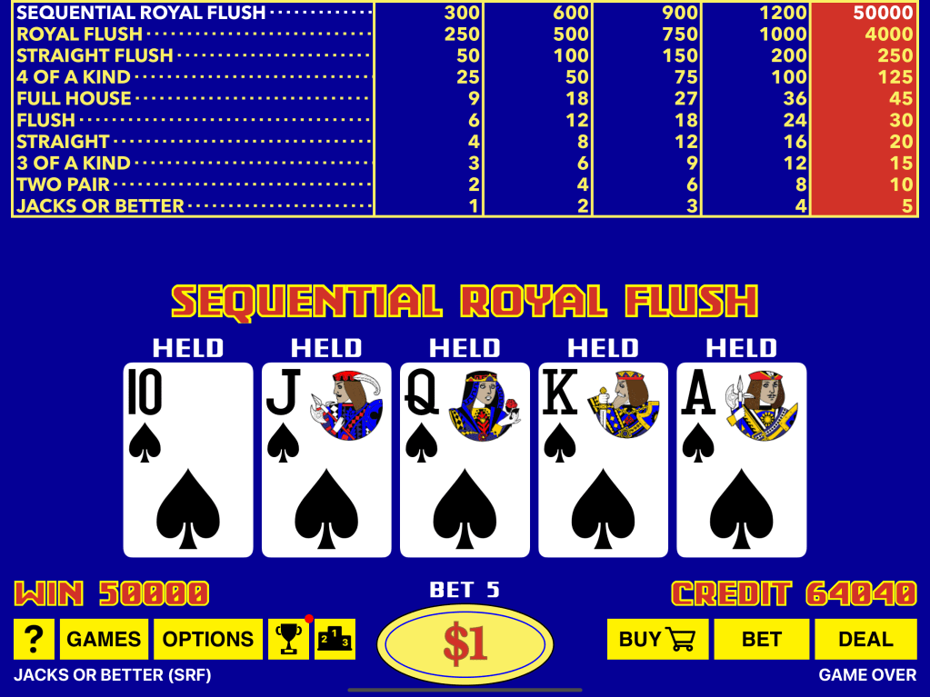 For those who prefer the tactile feel of physical buttons, we’ve integrated external Bluetooth keyboard support. Use keys 1 through 5 to select or unselect cards, and the return (enter) key to deal or draw. It’s an intuitive way to bring the traditional Video Poker experience into the digital age.
